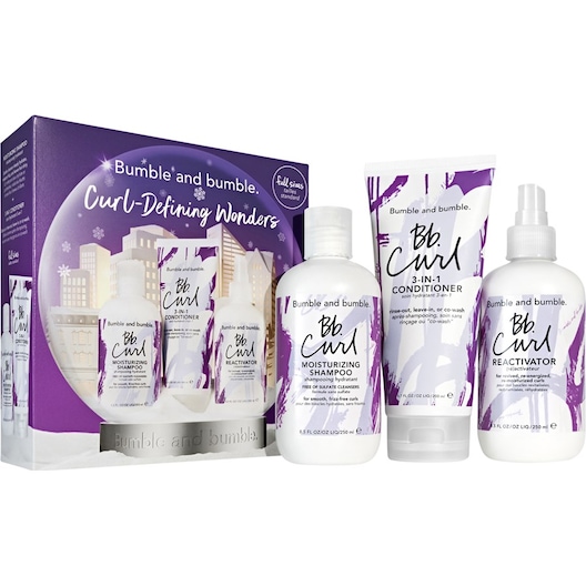 The set contains 250 millilitres of moisturising shampoo. This shampoo is particularly suitable for people with curly hair. The care product provides the hair with plenty of moisture and shine and contains nourishing ingredients: These include oils from avocado as well as shea and cocoa butter. The combination for hair care is complemented by 200 millilitres of Curl 3-in-1 Conditioner. The polymers contained in the product protect curly hair. The product also counteracts frizzy hair. The Bumble and bumble shampoo gift set for curly hair is rounded off with 250 ml of the Reactivator hairspray. This gives the hair bounce and moisture. Like the other two products, the spray contains rich ingredients. Three different, complementary hair care products give your hair plenty of bounce: The gift set from Bumble and bumble is an original care combination for your loved ones with curly hair.Description